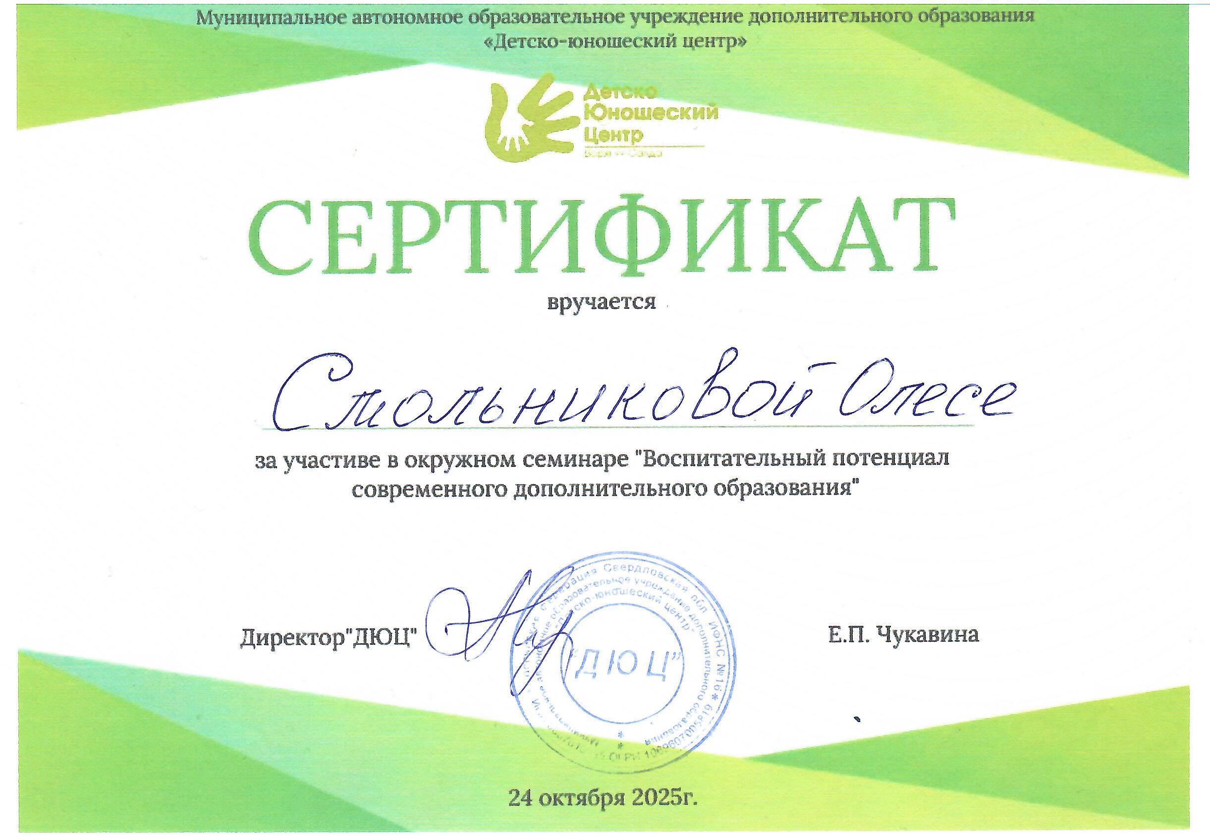 Участие в окружном семинаре "Воспитательный потенциал современного дополнительного образования"