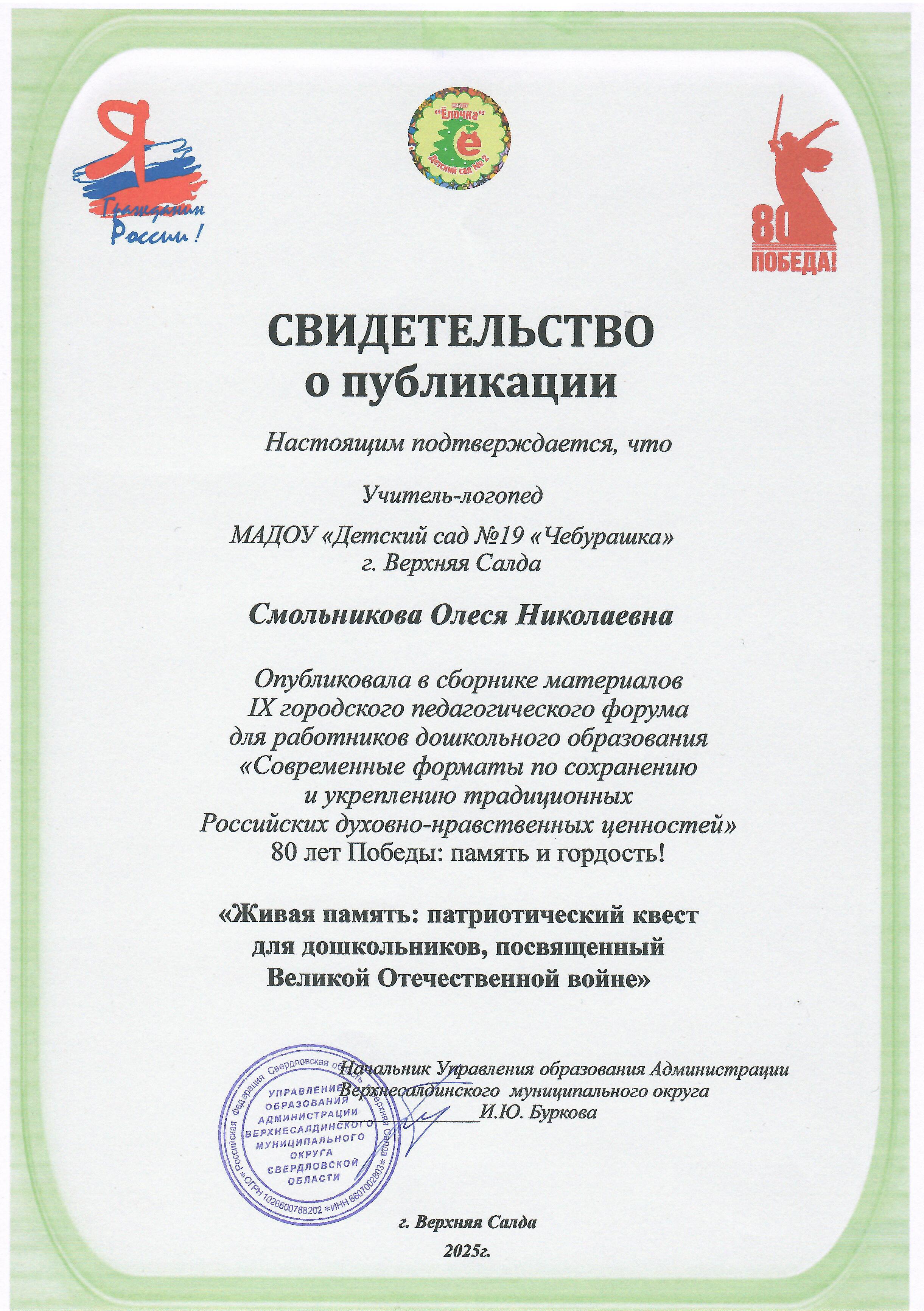 Свидетельство о публикации